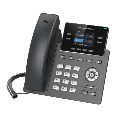 گوشی گرنداستریم Grandstream GRP2612W یک تلفن IP قدرتمند با دو اکانت SIP، 4 کلید خط و 16 کلید قابل برنامه ریزی BLF است. صفحه نمایش رنگی، کیفیت صدای HD ، قابلیت POE و وای فای تلفن تحت شبکه گرنداستریم GRP2612W را به یک ای پی فون مناسب برای کاربردهای منشی و مدیریتی تبدیل کرده است.